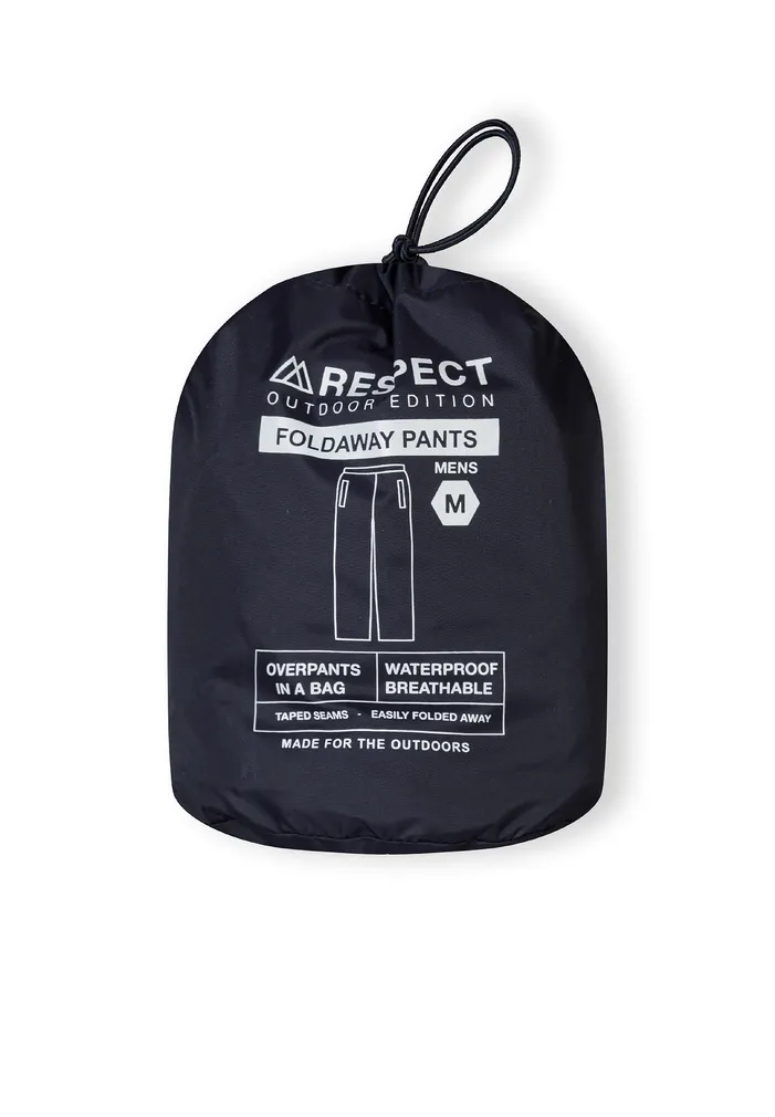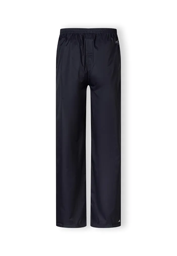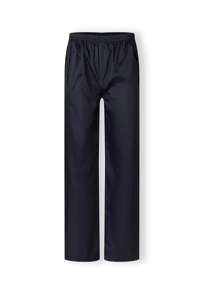 Lightweight, rain trousers packed in a handy pouch. Trousers with elastic waistband and side openings for easy access to pockets. Velcro adjustment at the bottom of the legs.