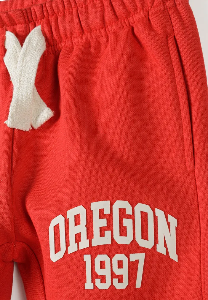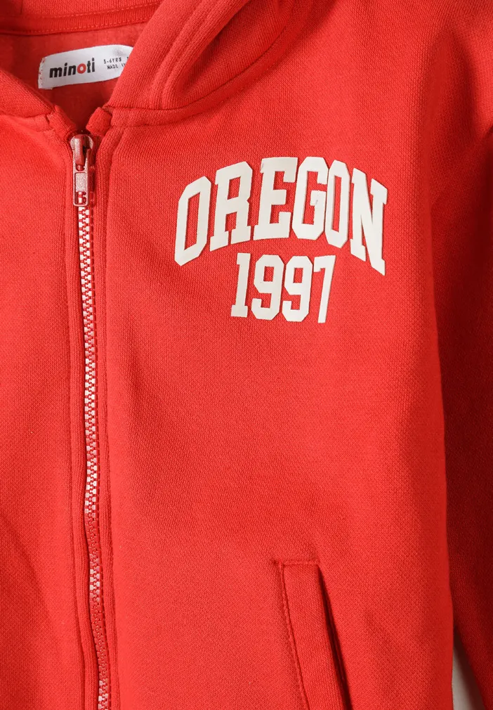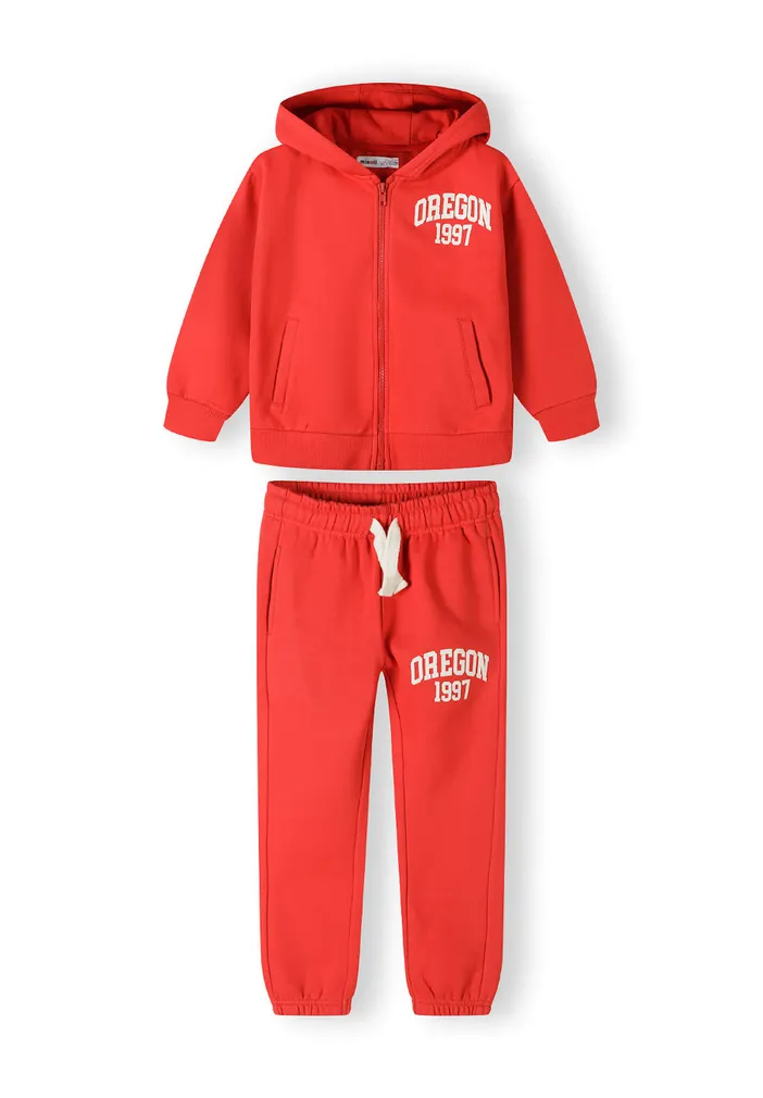This coordinated two-piece set includes a zip-through hooded top and matching jogger pants. Featuring raised rubber print on both hoodie and leg, it offers a sporty, standout look. The joggers are finished with an elastic waist and drawcord for fit, while ribbed trims add a secure, cozy feel. Ideal for everyday play, lounge, or sportswear.