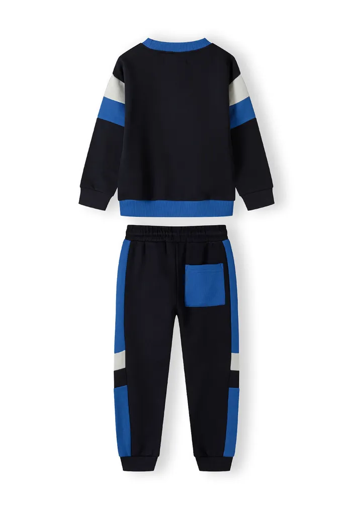 This colourblock set includes a long sleeve sweatshirt and matching jog pants crafted from soft sweat fabric. The crew neck top features ribbed cuffs and hem for a snug feel, while the joggers offer an elasticated waistband with drawstring and bold side stripe details. Designed for comfort with a sporty edge, this duo is perfect for everyday wear, whether relaxing at home or staying active.