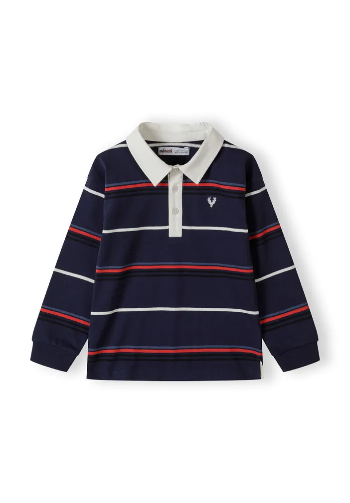 This rugby-inspired striped long sleeve shirt offers a timeless look with modern comfort. Featuring a woven collar, classic button placket and embroidered chest detail, it balances sporty and stylish perfectly. Ribbed cuffs add structure and warmth, while the bold horizontal stripes make it stand out. A great option for school, weekend outings or layering on cooler days.